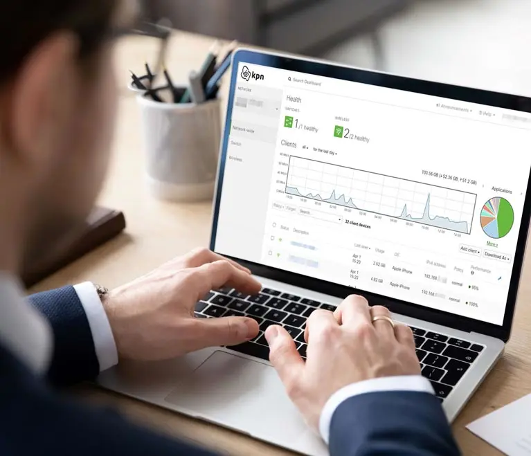Premium Wifi is een managed dienst waarbij je een abonnement neemt op de hardware en software. Het wifinetwerk wordt op maat geïnstalleerd en op afstand voor je beheerd. Zo word je ontzorgd bij het verbeteren van de netwerkperformance, het monitoren van de netwerkbelasting, verdelen van bandbreedte, verzamelen van data, wijzigen van instellingen en het verhelpen van problemen. Via het beheerportaal kunnen per locatie verschillende netwerken worden ingesteld. Voor ieder netwerk bepaal je wie er toegang krijgen en wat zij op het netwerk kunnen doen. Ook kun je gemakkelijk instellingen voor het limiteren van de bandbreedte voor bepaalde applicaties of gastennetwerken laten instellen.