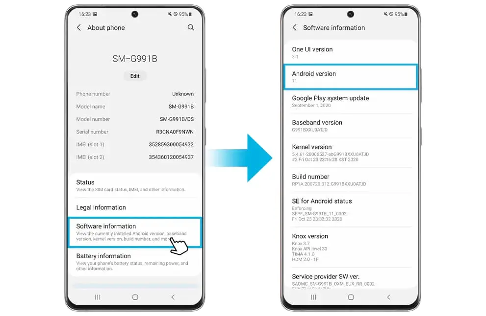 2. Selecteer Over de telefoon en kies Android-versie