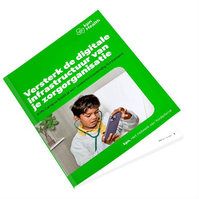 Benieuwd wat je mogelijkheden zijn? Download dan het eBook Versterk de digitale infrastructuur van je zorgorganisatie. Daarin lees je meer over KPN Campus en hoe we deze netwerkoplossing goed kunnen laten aansluiten op jullie situatie en behoeftes.