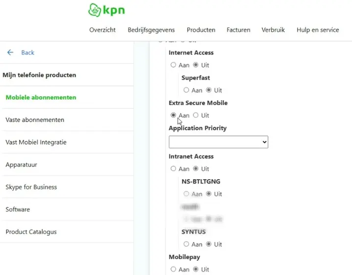 Zet Extra Veilig Mobiel aan door in MijnKPN het vinkje bij Extra Secure Mobile op ‘Aan’ te zetten.